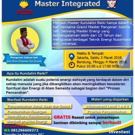 Workshop Kundalini Reiki Master Integrated Kundalini adalah suatu potensi energi dahsyat yang terdapat dalam diri setiap manusia. kata kundalini berasal... selengkapnya