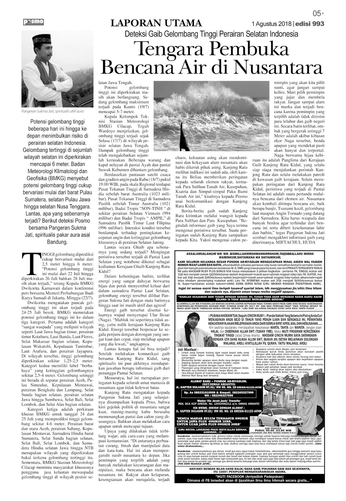 Potensi gelombang tinggi beberapa hari ini hingga ke depan menimbulkan risiko di perairan selatan Indonesia. Gelombang tertinggi di sejumlah wilayah selatan ini diperkirakan mencapai 6 meter. Badan Meteorologi Klimatologi dan Geofisika (BMKG) menyebut potensi gelombang tinggi cukup bervariasi mulai dari barat Pulau Sumatera, selatan Pulau Jawa hingga selatan Nusa Tenggara. Lantas, apa yang sebenarnya terjadi? Berikut deteksi Posmo bersama Pangeran Sukma Jati (Ki Sukma Jati), spiritualis pakar aura asal Bandung.
