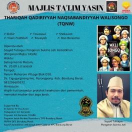 MAJLIS TA’LIM YASIN Thariqah Qadiriyyah Naqsabandiyyah Walisongo (TQNW) Tawassul dan Dzikir Tarekat TQNW Setiap malam Jumat di Padepokan Inti Semesta.