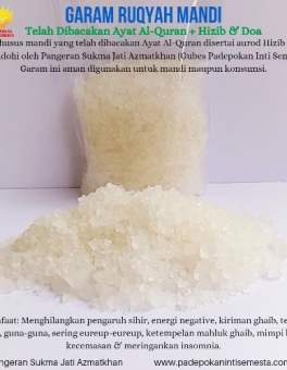 Rp 1.600.000GARAM RUQYAH MANDI Telah dibacakan Ayat Al-quran + Hizib & Doa Garam khusus mandi yang telah dibacakan Ayat Al-quran disertai aurod hizib dan doa. Diriyadohi oleh Pangeran Sukma Jati Azmatkhan (Gubes Padepokan Inti Semesta). Garam ini aman digunakan untuk mandi maupun konsumsi. Fungsi dan Manfaat: – Menghilangkan pengaruh sihir – Membersihkan energi negatif – Membuang… selengkapnya